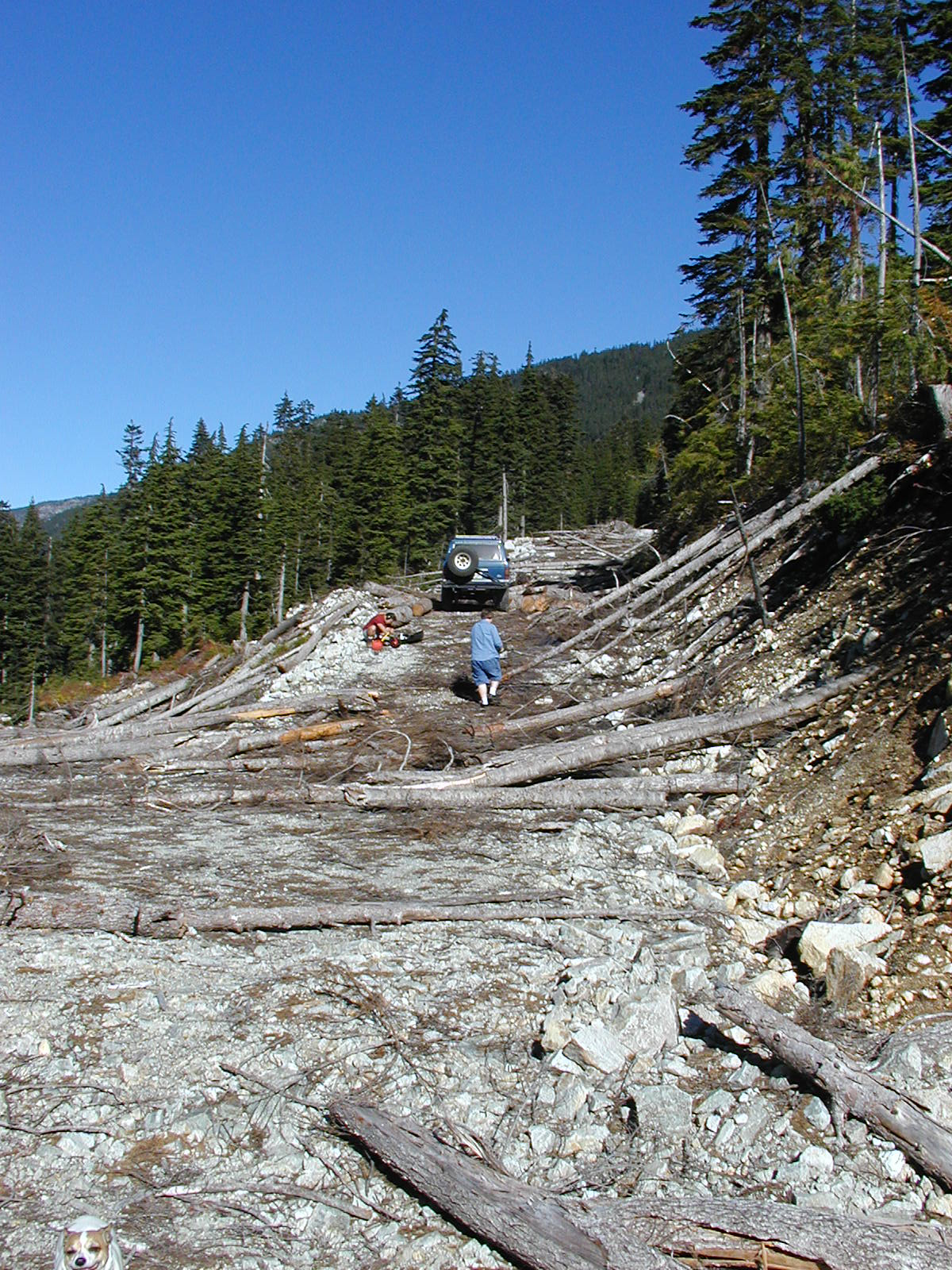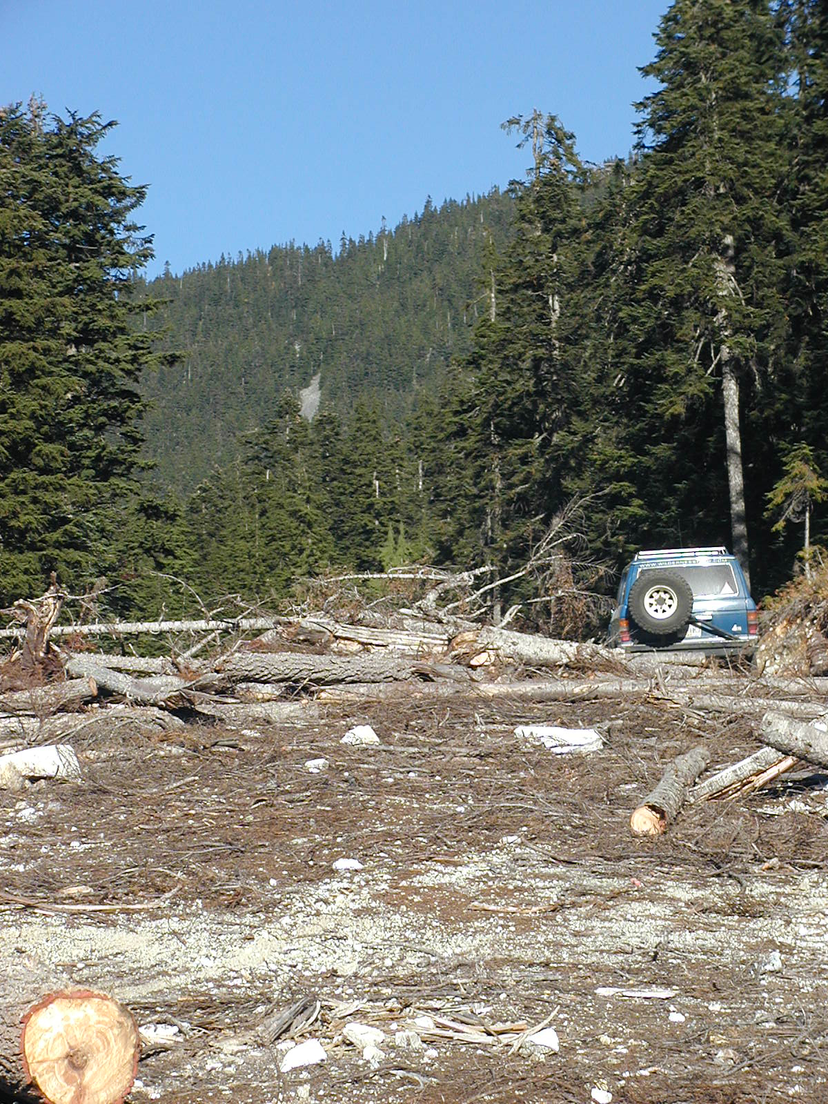 | Took L Interfor Road (deep x ditches) - dead ended after cutting 2 ft diam tree fallen | 49.49.824 | 121.46.067 | 923 |
