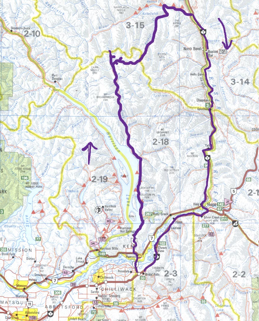 Greg & Dave think they may have found a back way into Nahatlatch, so off we go ....